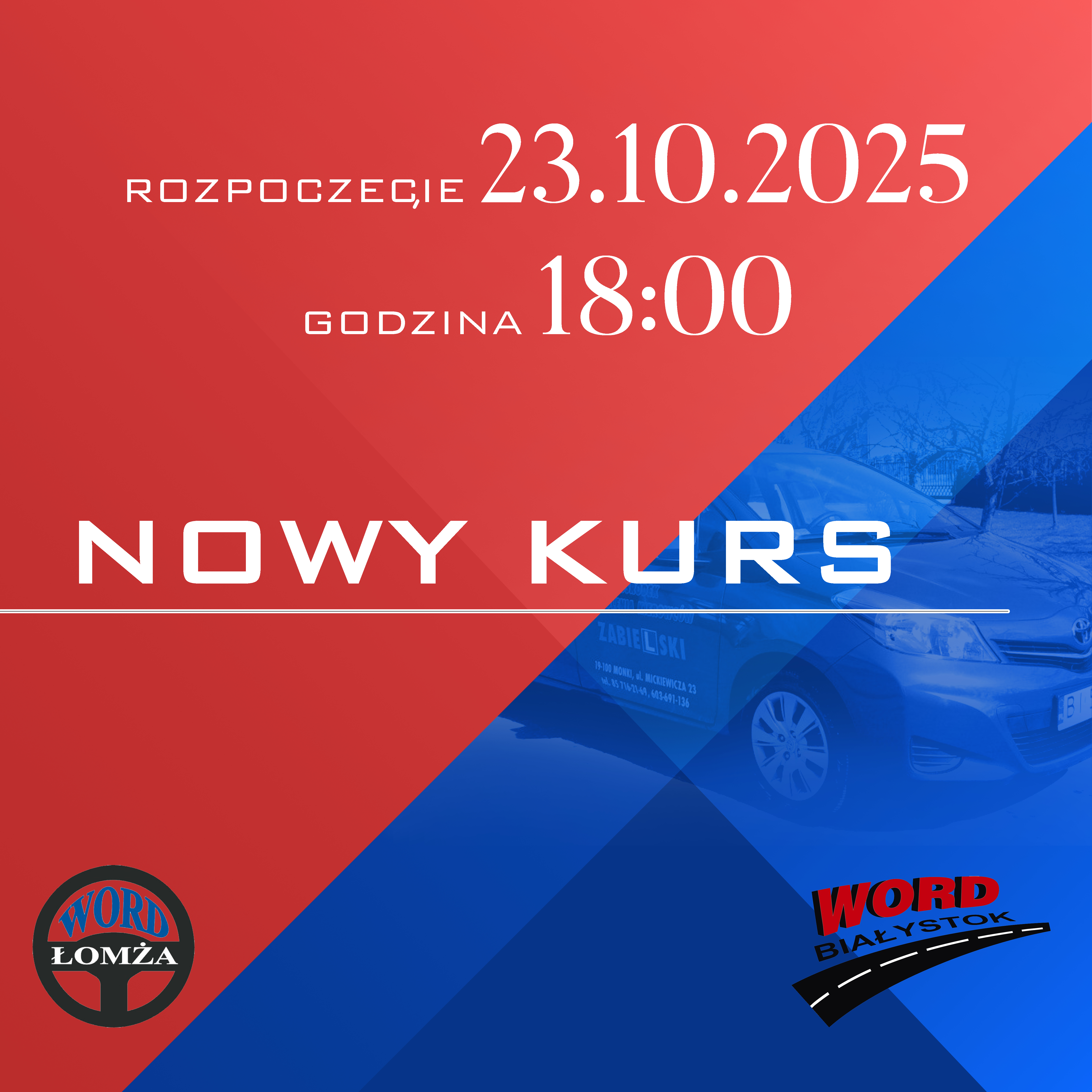 Jazdy szkoleniowe wszystkich kategorii prowadzane są na terenie całego Białegostoku lub Łomży oraz poza obszarem zabudowanym ze szczególnym uwzględnieniem okolic Wojewódzkiego Ośrodka Ruchu Drogowego, na nowych samochodach, takich jakie używane są podczas egzaminu państwowego w białostockim i łomżyńskim WORD-zie.